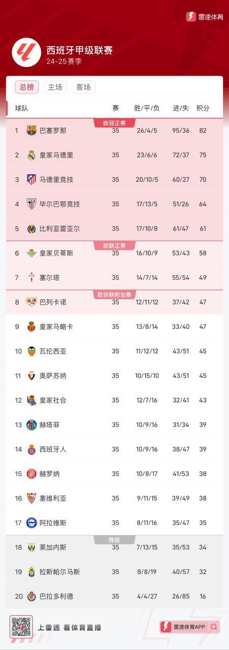 雷速体育5月12日讯 本轮西甲今晚凌晨已经全部结束,可谓是精彩纷呈。下面小编将为您带来西甲第35轮综述。